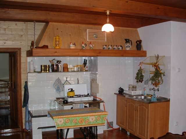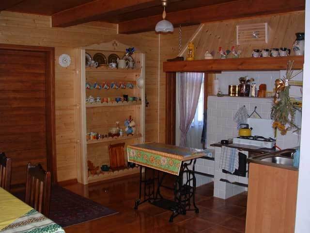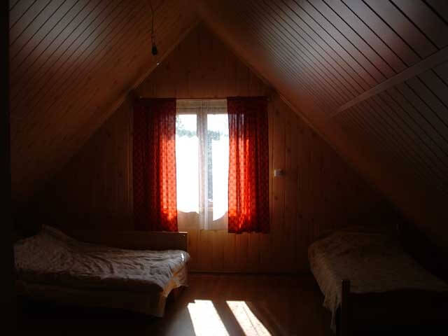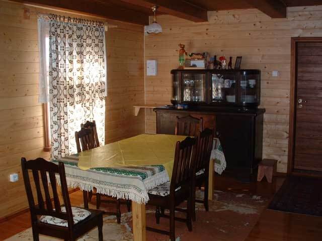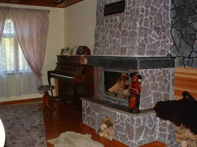 DOM DUŻY z izbą kuchenną (duża kuchnia z jadalnią), 2 łazienki, lodówka, TV, pokój wypoczynkowy z kominkiem kamiennym, pianinem i gitarą. Na piętrze jest duża sypialnia dla 4-6 osób.
